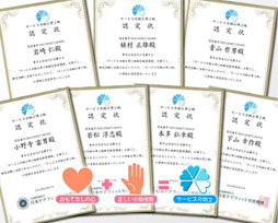 高齢者や障がい者に対する「おもてなしの心」と「介助技術」(安心して手伝いを任せられる方法や心構え)を学び、サービス介助資格を取得したスタッフが多数在籍しています。